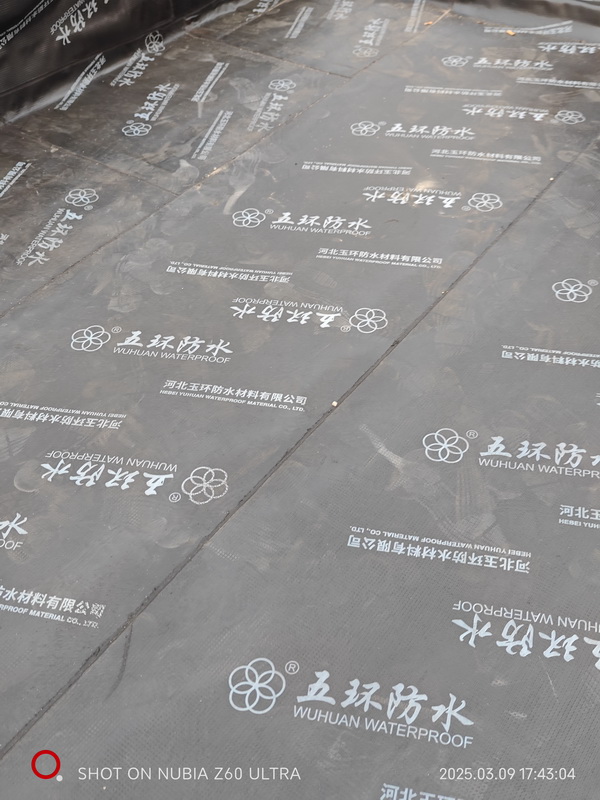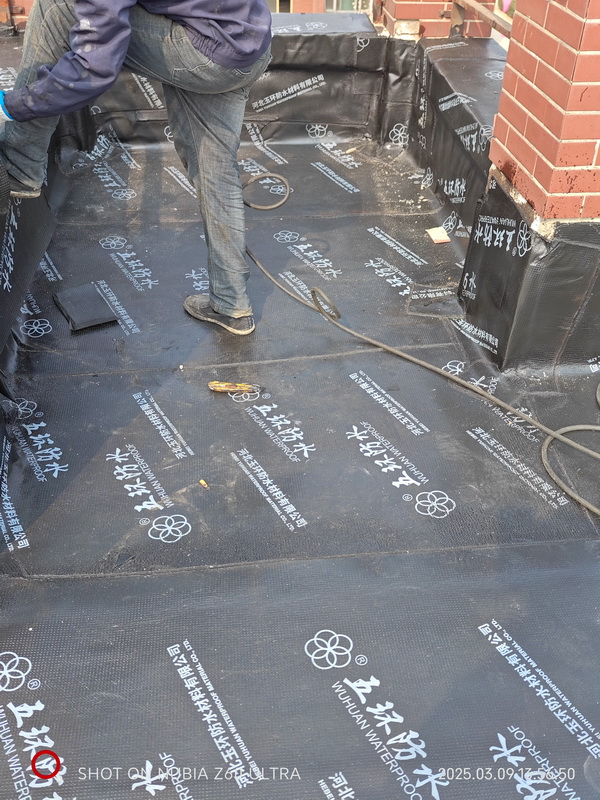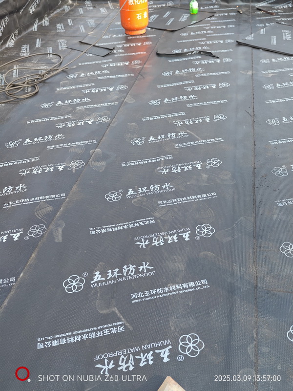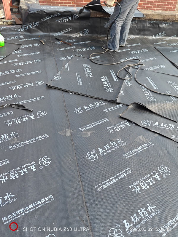 香槟小郡屋顶防水施工,采用五环SBS防水卷材施工